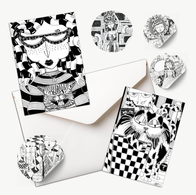 For €9 a month, you’ll receive a small bundle containing a new sticker design, a miniature art print, and a personal message from me. It’s a low-cost way to support my work and build your own mini-gallery at the same time.